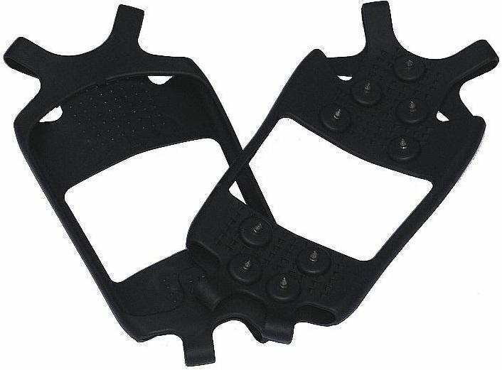 -5 špeciálnych oceľových protisklzových hrotov na prednej časti a 4 na zadnej časti zasadené vo vodoodpudivom gumovom páse zabezpečujú bezpečný pohyb na ľade i snehu