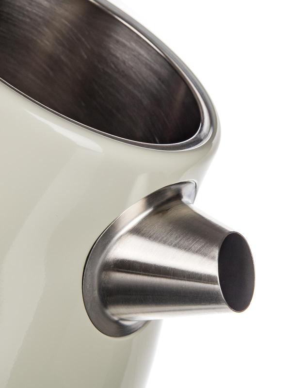 Moderní dvoustěnná varná konvice EBBA s plochým dnem a nerezovým tělem, o objemu 1,7 l, je stylovým doplňkem každé kuchyně.