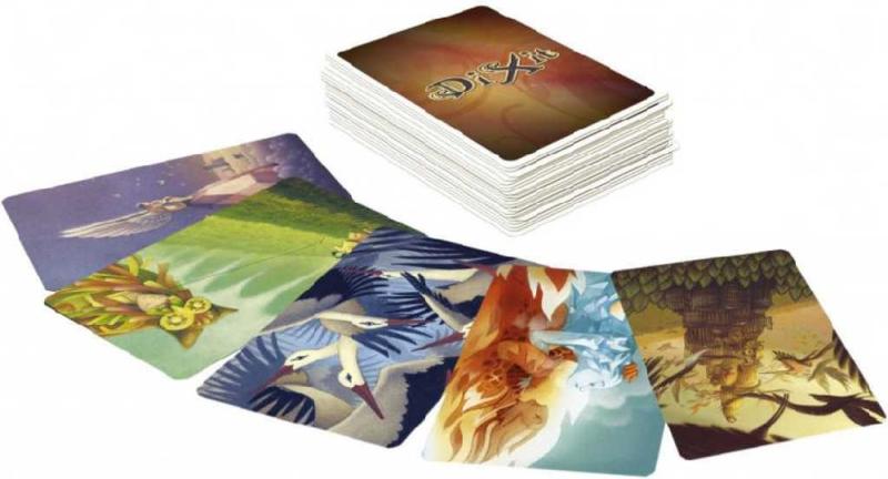 DIXIT: Každý z hráčů dostane do ruky 6 karet. Začínající hráč si vybere ze svých karet jednu, kterou položí na rubem nahoru stůl a slovně ji popíše. Jen na něm je, zda se omezí pouze na jedno slovo nebo si vymyslí celý příběh. Ostatní k ní přidají jednu ze svých karet. Karty na stole se zamíchají a poté rozloží lícem nahoru. Nyní ostatní hráči pomocí svých žetonů s čísly typují, kterou kartu začínající hráč popsal. Na základě správnosti tipů jsou pak přiděleny body. Hra končí dobráním poslední karty v balíčku.