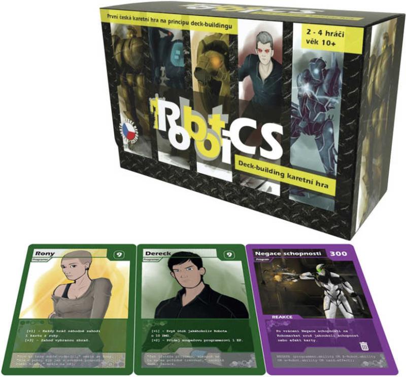 Původní česká karetní hra s originální tématikou. RobotiCS deck-building karetní hra, která nabízí každému hráči možnost stát se Programerem mohutných robotů, kteří spolu svedou bitvu.Ve hře se odvíjí souboj Alfa-Robotů podporovaných Programery. Alfa-Robotům ubývají zásahové body a body štítu, kdežto Programerům přibývají žetony vyčerpání. Svými schopnostmi se navzájem doplňují. Ovšem Alfa-Robot může nést vždy jen jeden kus karty výbavy, a tak hráč musí do balíčku pořídit i Beta-Roboty a přiřazovat karty výbav i jim. Hru můžete zvrátit i okamžitými Programovými kartami Akce a Reakce. Ve hře vznikají různé strategie, např.: discard, healing, multiplikace Beta-Robotů, agro, aj. 203 karet v balení zaručuje pokaždé nespočet různých herních kombinací.