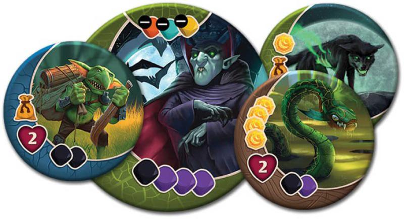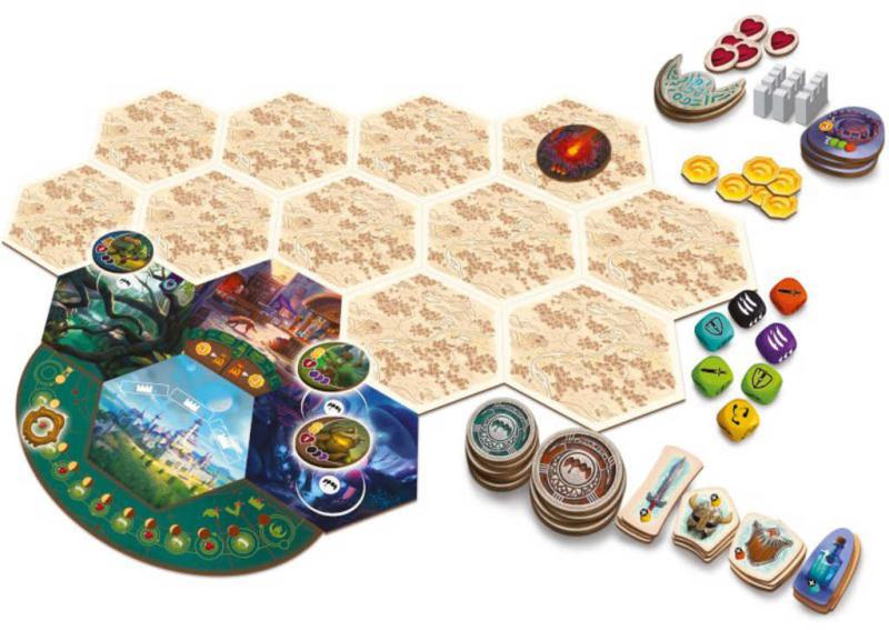 8 kostek hrdinů, 20 žetonů houževnatosti, 1 ukazatel houževnatosti Bestie, 25 oboustranných žetonů vybavení, 31 příšer, 5 kostek příšer, 10 žetonů zranění, 4 žetony akcí, 12 žetonů použitého vybavení, 1