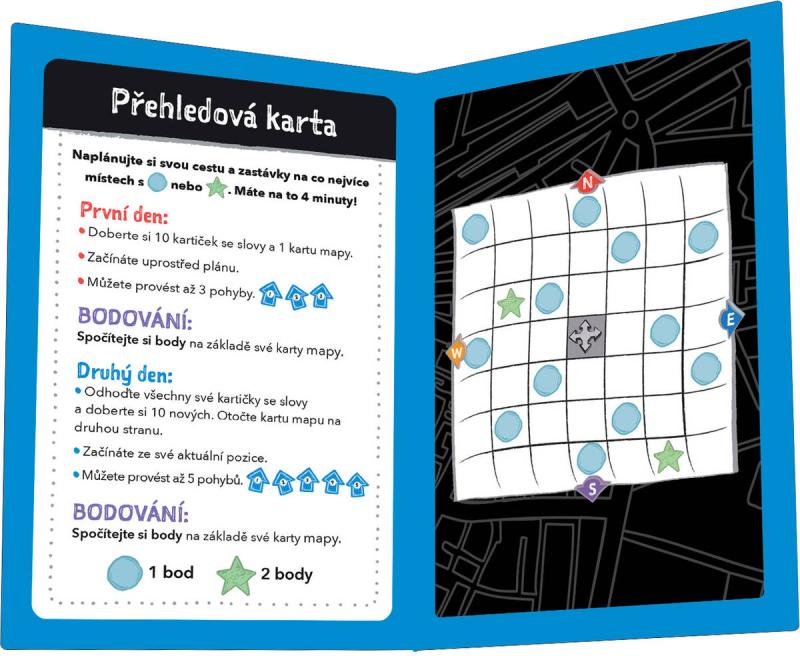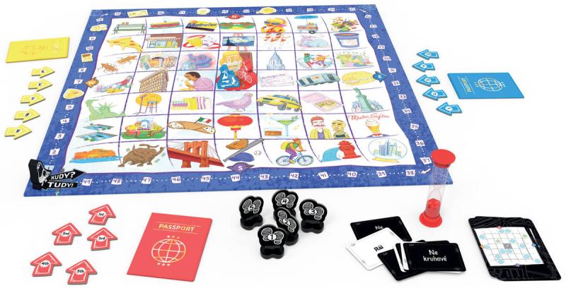 Společenská hra Kudy? Tudy!: V této hře hrajete za cestovatele hledající různé památky v cizím velkoměstě, jenže v místním jazyce ovládáte pouze několik slov... Obyvatelé města (ostatní hráči) se budou všemožně snažit uhodnout vaše nápovědy, aby vám pomohli dostat se tam, kam chcete, aniž se ztratí v překladu!Ve hře "Kudy? Tudy!" se s kamarády vydáte na dvoudenní výlet do úžasného velkoměsta. Každý hráč má vlastní tajnou mapu míst, která chce navštívit, ale bude potřebovat pomoc od ostatních hráčů, aby se k nim dostal. Budete se střídat na tazích a hrát za cestovatele i za domácí obyvatele města tak, abyste navštívili co nejvíce míst. Po cestě budete také sbírat zlaté suvenýry, které naleznete. Ale má to háček. Přesně jako když se ptáte na cestu v cizím jazyce: máte k dispozici jen pár slov, pomocí kterých říkáte, kam se chcete dostat. Bon voyage!