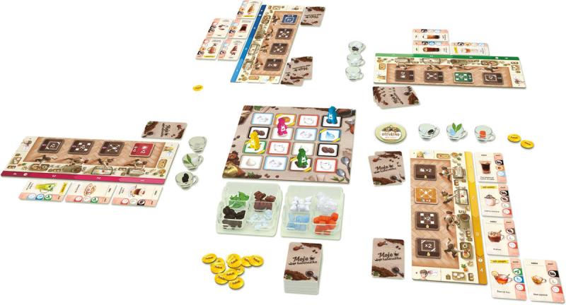 Společenská hra Moje kavárnička.Dát si šálek kávy - to je zkrátka moment pohody – pro zákazníka. V kavárně se však ve špičce objednávky spíše hromadí a nejinak je tomu ve hře Moje kavárnička i dnes. Vaším cílem bude dokončit objednávky zákazníků, zvýšit tak své hodnocení a být díky tomu uznáván coby nejlepší barista.