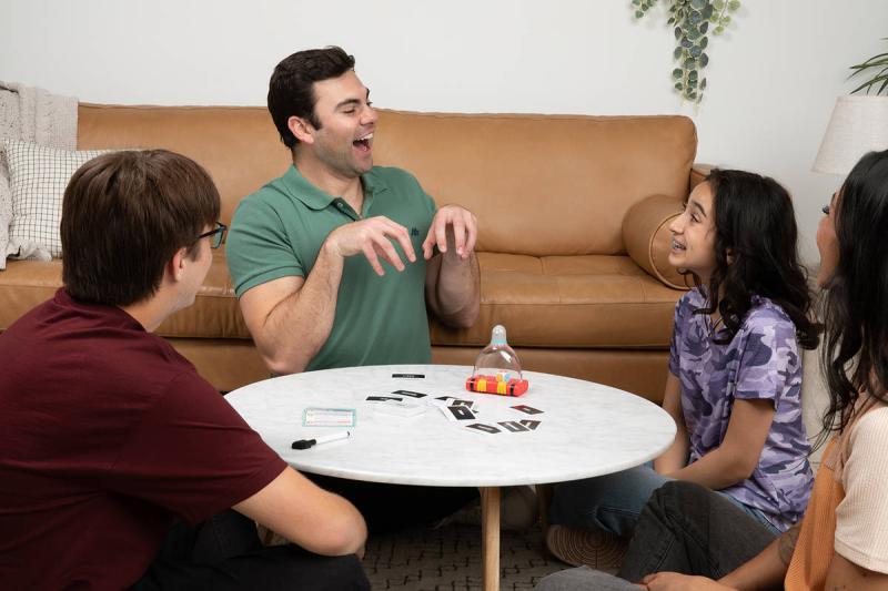 Přimějte svůj tým uhodnout slovo na vaší kartě tím, že ho beze slova předvedete. Nesmíte se postavit ani naznačovat neslyšným hláskováním slova.