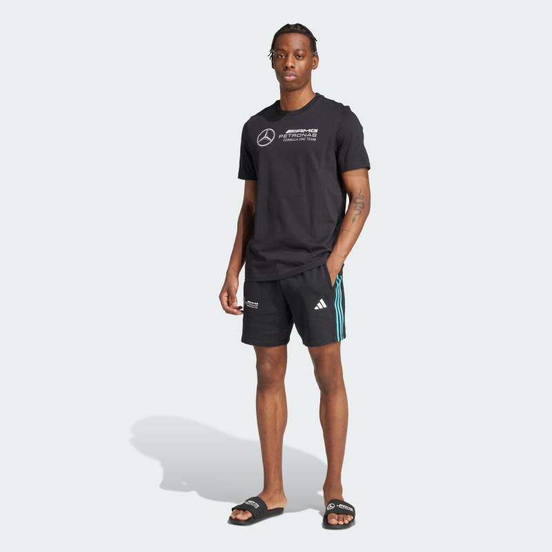 Na hrudi je umiestnené logo Mercedes - AMG Petronas Formula One Team, ktoré vyjadruje podporu pretekárskemu tímu, a na chrbte nájdete ikonické logo s tromi pruhmi značky adidas, ktoré podčiarkuje športový charakter trička.