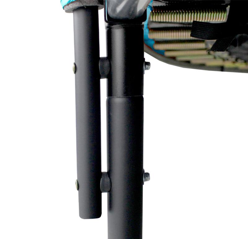 Kruhová Hi-Ten zesílená konstrukce trampolíny je vyrobená z kvalitní galvanizované oceli z vynikající odolností proti korozi, U nohy mají povrchovou úpravu práškovou barvou.