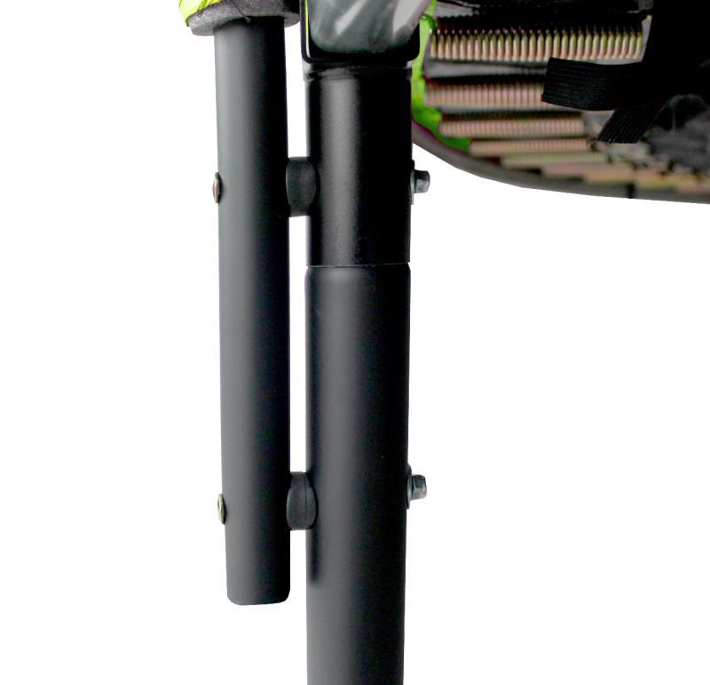 Kruhová Hi-Ten zesílená konstrukce trampolíny je vyrobená z kvalitní galvanizované oceli z vynikající odolností proti korozi, U nohy mají povrchovou úpravu práškovou barvou.