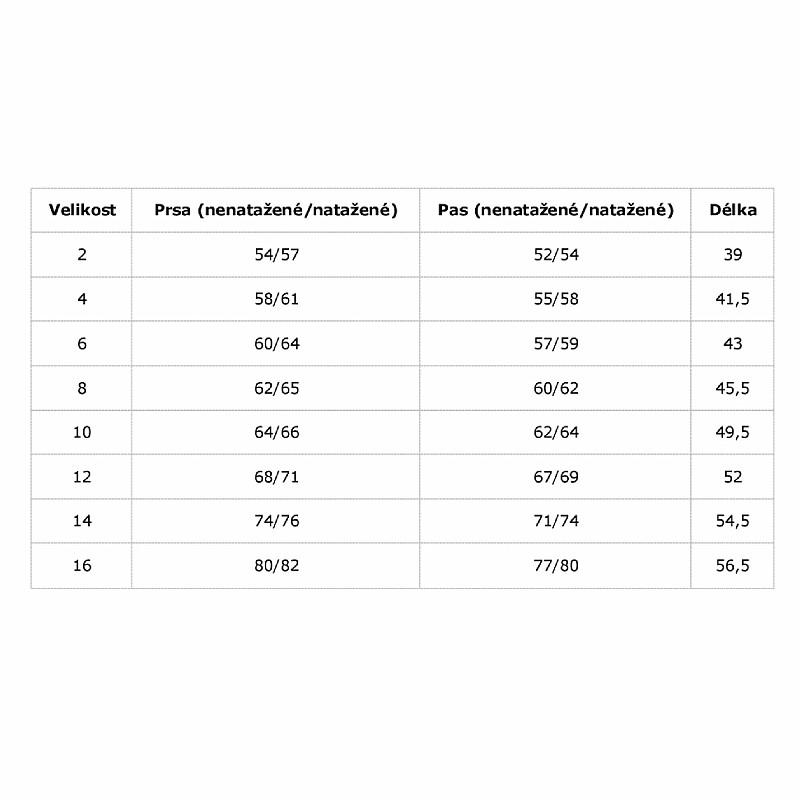 | Tabuľka veľkostí: | |