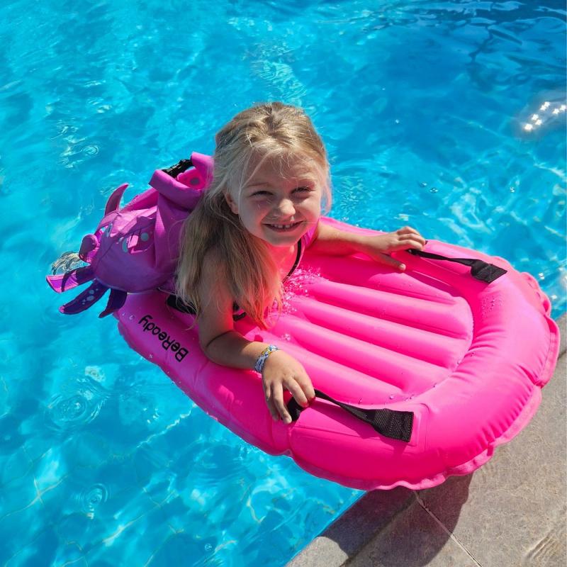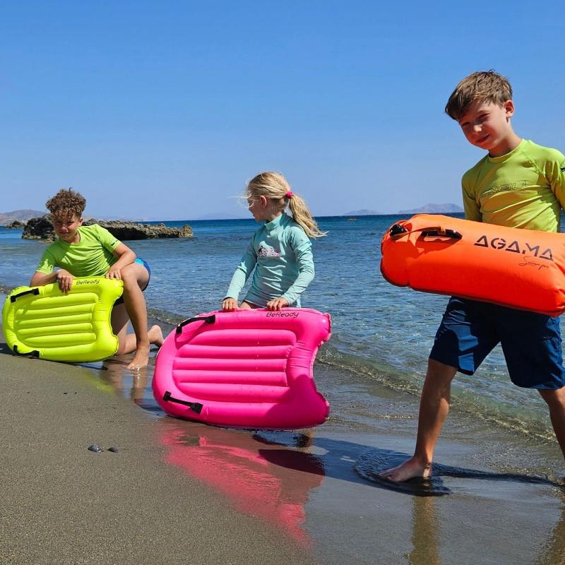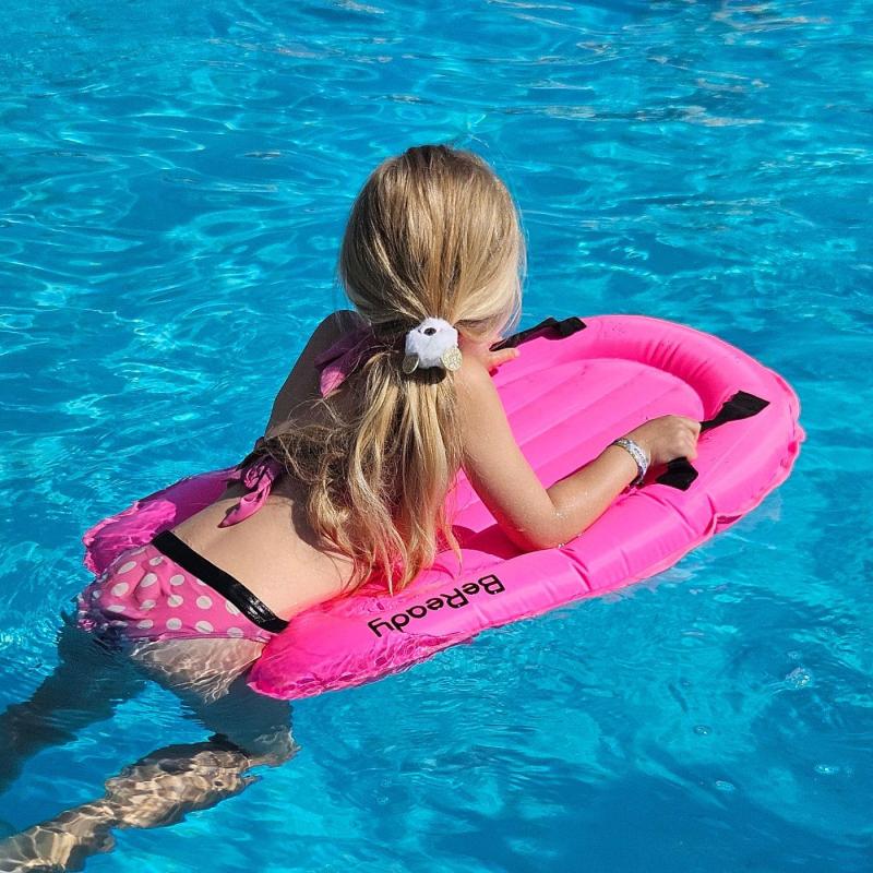 Nafukovací surfovací deska s madly pro děti je lehká, snadno přenosná a ideální pro zábavu u vody. Vyrobená z vysoce odolného omyvetelného materiálu, nabízí bezpečné uchopení díky integrovaným madlům a snadné nafukování i skladování /po vyfouknutí se dá sbalit do malého balíčku/. Je vhodná na plavání, surfování a sjíždění vln. Délka plavecké desky umožňuje i použití dospělou osobou. Má vysoký výtlak a udrží nad vodou i dospělého člověka.