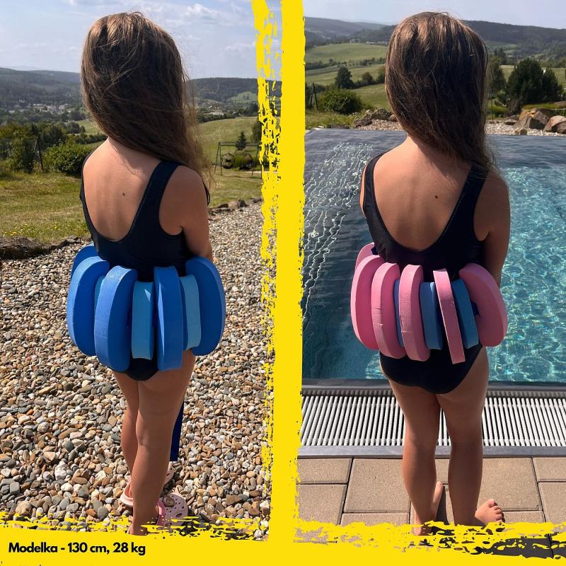 Pás se skládá z 13-ti samostatných dílků, které lze snadno odebírat nebo přidávat podle potřeby. Díky tomu si každý může nastavit ideální vztlak – ať už jde o malé dítě, nebo staršího plavce. Kromě dětské verze je v nabídce i varianta jako plavecký pás na vyšší váhu, vhodná například pro větší děti nebo dospělé začátečníky.