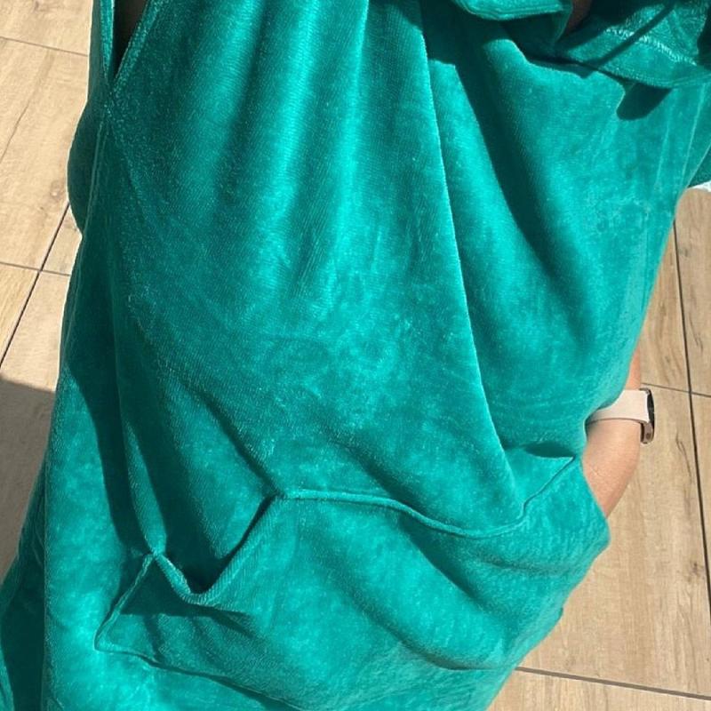 Pončo je skladné a ľahké na cestovanie k vode, či už sa vydáte k moru, k bazénu alebo k jazeru. Samozrejmosťou je veľká kapsa vpredu a kapucňa.