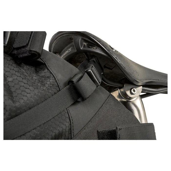 Táto taška Venture je nevyhnutnou súčasťou každého bikepackingového výletu. Taška sa jednoducho prichytí pod sedlo a ani si nevšimnete, že ju veziete dovtedy, kým nebudete potrebovať suché oblečenie alebo veci na spanie. Vodoodolný Dryliner materiál a rolovací uzáver udržia vašu výbavu vždy suchú dokonca aj v tých najnáročnejších podmienkach, takže sa môžete sústrediť na zážitky z jazdy a všetky zaujímavosti okolo. Vďaka zosilnenému materiálu a robustnému dizajnu taška prežije všetky možné výlety aj mimo civilizáciu.