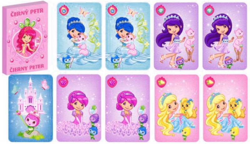 Klasická dětská společenská stolní karetní hra s motivem Jahůdka - Princezny. Karty jsou uloženy v papírové krabičce.Černý Petr je oblíbená karetní hra. Základem hry, při které jednotliví hráči tahají mezi sebou karty a hledají stejné dvojice, je neskončit v závěru s Černým Petrem v ruce. Černý Petr je karta, která nemá svoji dvojici a slouží pouze k tomu, aby na konci hry ukázala na toho, kdo je Černým Petrem. Během hry se tak lidé často snaží tuto kartu vyměnit někomu jinému