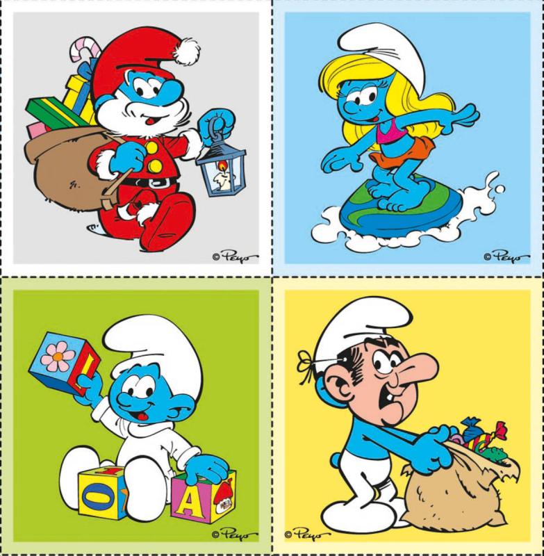 Dětské pexeso s pěknými ilustracemi s motivy Šmoulů. 32 dvojic. Box k sestavení pro vystřižené kartičky součástí. Obsahuje návod ke hře. Pevný karton s lesklou povrchovou úpravou proti oděru.