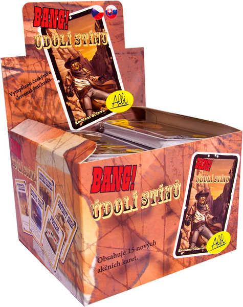 Rozšíření ke hře Bang!, které bylo celé vymyšleno hráči z České republiky a Slovenska! Autor hry Bang! Emiliano Sciarra je poté dále testoval a upravil.Rozšíření obsahuje 20 karet, z toho 5 karet nových postav a 15 akčních karet. Můžete se například těšit na akční kartu Tornádo, modrou kartu Ducha nebo na Poslední pivo! Údolí stínů se přidá ke kartám základní hry a tím rozšíří jak akční karty, tak postavy. Jinak se hraje dle normálních pravidel. Rozšíření se dá hrát společně se všemi oficiálními rozšířeními, ale není samostatně hratelné.