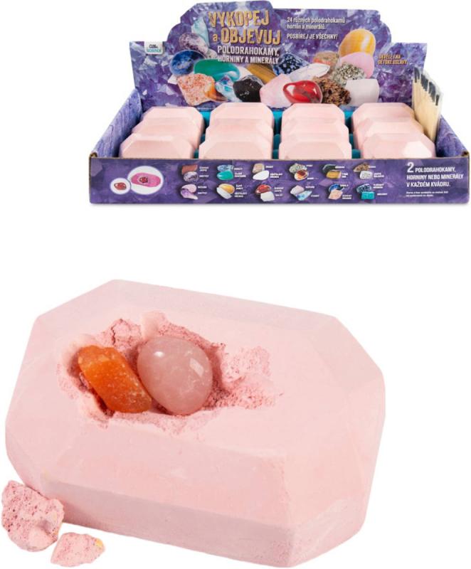 Objevte kouzlo přírodních pokladů s úžasnou sadou Vykopej a objevuj - Minerály! Tato jedinečná sada 12 sádrových krychliček skrývá překvapení v podobě polodrahokamů a minerálů. V této sadě je kompletní sbírka polodrahokamů a minerálů, každý z 12-ti kusů je tedy jiný!