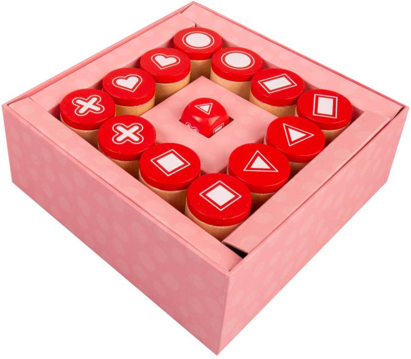 Zvukové pexeso obsahuje: 12 dřevěných válečků (6 dvojic), které při zatřesení vydávají zvuk, dřevěná hrací kostka se symboly, návod na 4 různé hry.