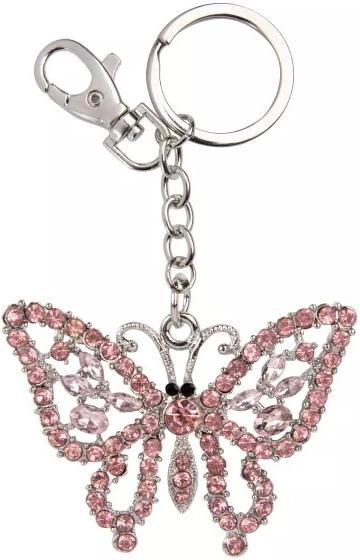 Motýlek - třpytivá kovová klíčenka s kamínky, přívěsek na klíče s karabinkou. Doplňte svůj každodenní styl o špetku třpytivého luxusu s elegantní štrasovou klíčenkou, která okouzlí na první pohled.