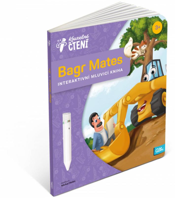 Interaktivní mluvicí dětská kniha Bagr Mates z edice Kouzelné čtení seznámí děti od 3 let s dobrodružstvím roztomilého bagru na stavbě. Myslíte si, že se na stavbě nemůže stát nic, co by stálo za řeč? Tak to jste ještě neslyšeli o stavbě, kde je stavbyvedoucím pan Makovička. Právě přijel nový bagr, kterého náklaďák Rudolf pojmenoval Mates. Už cestou na stavbu se Mates osvědčil při odklízení stromu, a to ještě netušil, jakým se stane hrdinou. Matesovi se totiž podaří vykopat poklad nebo odhalit strašidlo, kterého se bojí jeho kamarádi. A nejen to! Pojďte zjistit, co všechno bagr Mates na stavbě zažil. Kniha Bagr Mates obsahuje přes 500 zvukových stop.