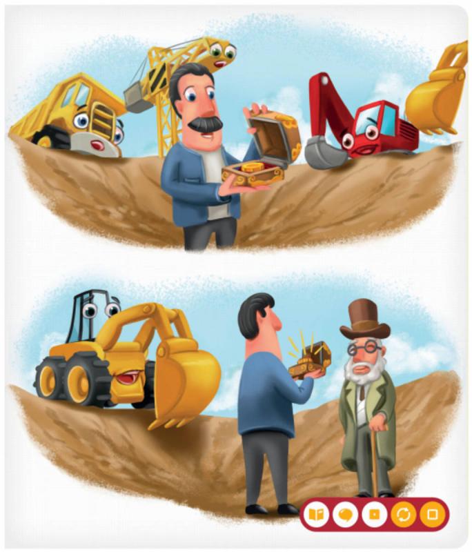 Bagr Mates - Interaktivní mluvicí kniha z produktové řady "Kouzelné čtení" od Albi.Interaktivní mluvicí dětská kniha Bagr Mates z edice Kouzelné čtení seznámí děti od 3 let s dobrodružstvím roztomilého bagru na stavbě. Myslíte si, že se na stavbě nemůže stát nic, co by stálo za řeč? Tak to jste ještě neslyšeli o stavbě, kde je stavbyvedoucím pan Makovička. Právě přijel nový bagr, kterého náklaďák Rudolf pojmenoval Mates. Už cestou na stavbu se Mates osvědčil při odklízení stromu, a to ještě netušil, jakým se stane hrdinou. Matesovi se totiž podaří vykopat poklad nebo odhalit strašidlo, kterého se bojí jeho kamarádi. A nejen to! Pojďte zjistit, co všechno bagr Mates na stavbě zažil. Kniha Bagr Mates obsahuje přes 500 zvukových stop.