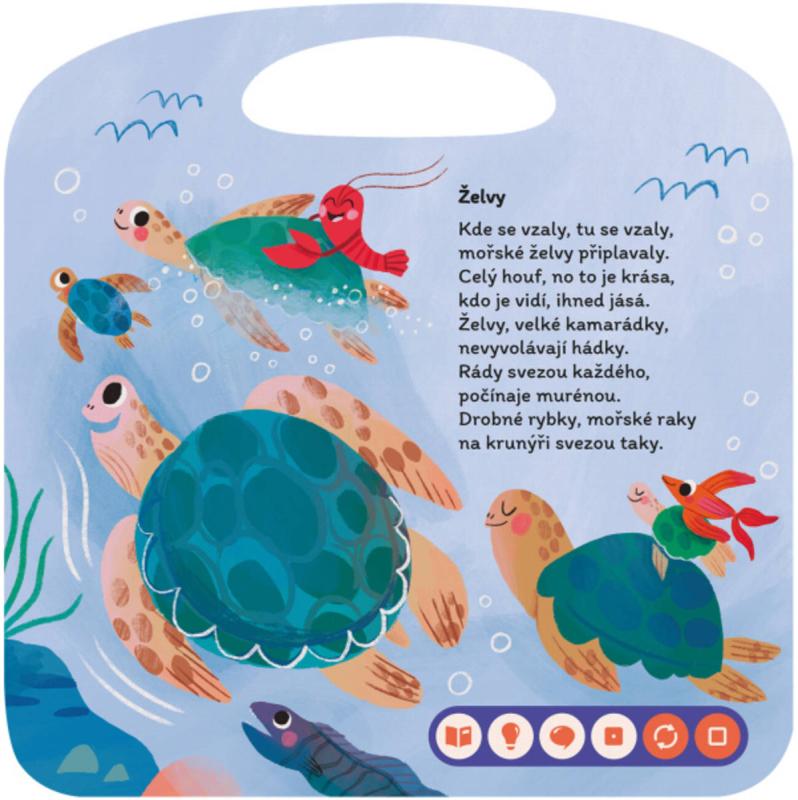 Básničky z moře - Interaktivní mluvicí kniha z produktové řady "Kouzelné čtení" od Albi.Moře vážně není žádná nuda! Přesvědčte se o tom s interaktivní mluvicí knihou Básničky z moře z edice Kouzelné čtení, která zabaví děti od 3 let. Kdo je v moři kapelník? A kdo vypráví popletené pohádky? Co zajímá delfína? A koho a za co chválí mořský rak? Jste zvědaví? Tak otevřete knížku a básničky vám na tohle všechno odpoví a prozradí toho i mnohem více. V knize nechybí ani zábavné kvízy. Kniha obsahuje přes 300 zvuků a textů.