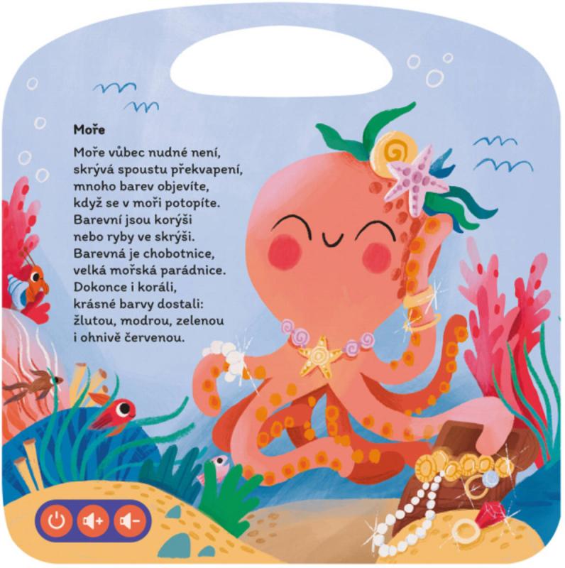 Moře vážně není žádná nuda! Přesvědčte se o tom s interaktivní mluvicí knihou Básničky z moře z edice Kouzelné čtení, která zabaví děti od 3 let. Kdo je v moři kapelník? A kdo vypráví popletené pohádky? Co zajímá delfína? A koho a za co chválí mořský rak? Jste zvědaví? Tak otevřete knížku a básničky vám na tohle všechno odpoví a prozradí toho i mnohem více. V knize nechybí ani zábavné kvízy. Kniha obsahuje přes 300 zvuků a textů.