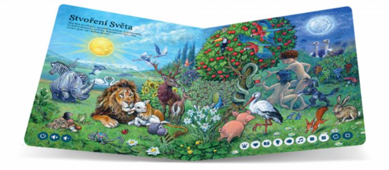 Znáte nejčtenější knihu na světě, která je nazývána Knihou knih? Je to Bible a byla přeložena do všech jazyků. Naše mluvicí kniha s názvem Biblické příběhy vám bude vyprávět to nejzajímavější ze Starého a Nového zákona. Zjistíte, co říkají jednotlivé biblické postavy, poslechnete si dětské modlitbičky i hezké písničky, potěší vás krásné barevné ilustrace a v zábavných kvízech si ověříte, co jste si z knížky zapamatovali. Kniha obsahuje téměř 1 500 zvukových stop.
