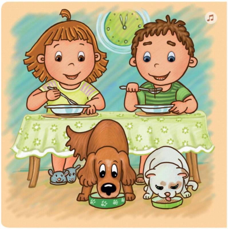Interaktivní mluvící mini kniha provede děti od 2 let každodenními činnostmi. Děti stráví jeden den se sourozenci Honzíkem a Barborkou. Vstanou s nimi z postýlky, vyčistí si zoubky, dají si něco dobrého k obědu a pohrají si. Všechny činnosti v knize doprovází veselá písnička. V knize nechybí dialogy, říkanky a samozřejmě ani jednoduché zábavné kvízy. Kniha Denní činnosti obsahuje přes 400 zvuků a textů.