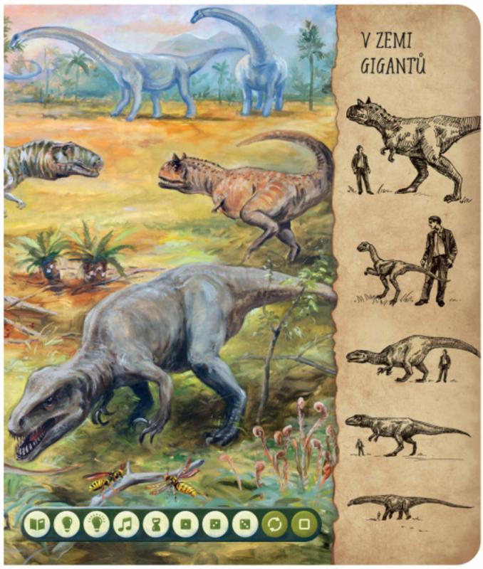 Dinosauři - Interaktivní mluvicí kniha z produktové řady "Kouzelné čtení" od Albi.Kniha Dinosauři z edice Kouzelné čtení provede čtenáře od zrodu prvních dinosaurů přes druhohory, kdy dinosauři ovládli svět a dosáhli gigantických rozměrů, až k jejich zániku způsobeného dopadem obrovského meteoritu. Kniha dětem ukáže, jak dinosauři vypadali podle nejaktuálnějších vědeckých poznatků včetně zvuků, které mohli vydávat. Dinosauři osloví jak nejmenší děti od 6 let, tak i starší děti, které se již aktivně o prehistorický svět zajímají. Kniha Dinosauři obsahuje přes 1 700 zvuků a textů.