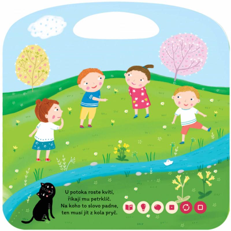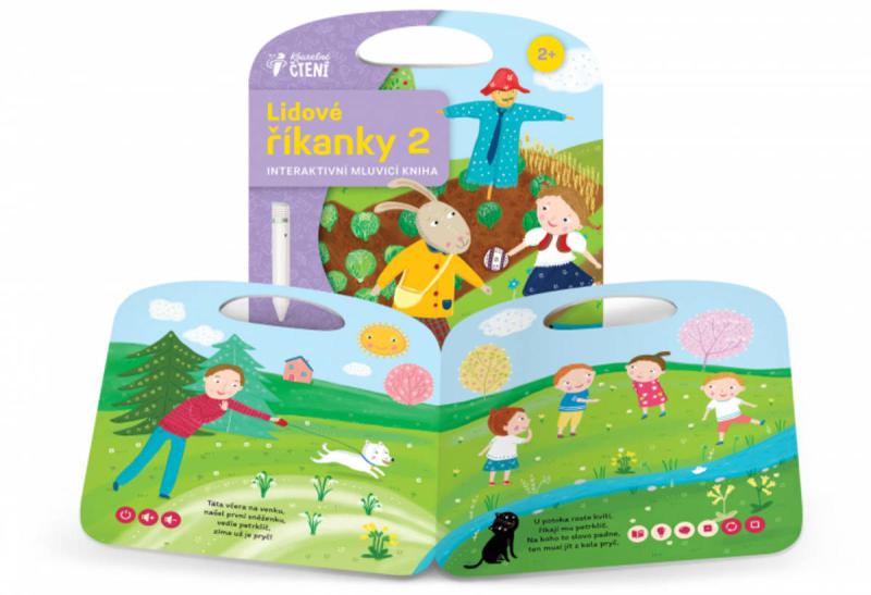 Lidové říkanky 2 - Interaktivní mluvicí kniha z produktové řady "Kouzelné čtení" od Albi.V druhé knížce Lidových říkanek z edice Kouzelné čtení najdete dalších 12 známých lidových říkanek, které přechází z generace na generaci a jsou důležité pro pochopení rytmu a melodie jazyka. Říkanky provází děti od nepaměti. Díky nim děti lépe chápou rytmus a melodii jazyka. Některé říkanky jsou spojeny i s pohybovými aktivitami a to je pro nejmenší ta pravá zábava. Dvanáct známých říkanek jako Kolo, kolo mlýnský, Leze žába do bezu nebo Šiju boty do roboty s krásnými ilustracemi Michaely Bergmannové jistě děti zabaví a pobaví zároveň. Knížka obsahuje tyto říkanky: Táta včera navenku; U potoka roste kvítí; Povídám, povídám pohádku; Kolo, kolo mlýnský; Šel zajíček brázdou; Náš táta šel na houby; Šiju boty do roboty; Tralala, tralala, kočička se vdávala; Medvěde, medvěde; Žába leze do bezu; Jedna, dvě, Honza jde; Kovej, kovej, kováříčku. Knížka obsahuje přes 600 zvukových stop.