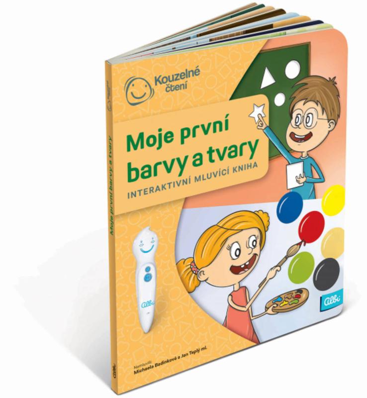 Moje první barvy a tvary - Interaktivní mluvicí kniha z produktové řady "Kouzelné čtení" od Albi.Interaktivní mluvící kniha Moje první barvy a tvary z edice Kouzelné čtení provede děti od 3 let světem kolem nás a ukáže jim, jak již název napovídá, všemožné barvy a tvary. Průvodci se stanou sourozenci Sára a Tom a poví dětem například jaká barva vznikne smícháním červené a modré, jaký tvar má včelí plástev a co je silueta. Kniha je plná dialogů a zvuků, které děti zaujmou. Nechybí ani oblíbené zábavné kvízy ve 3 úrovních obtížnosti. Kniha Moje první barvy a tvary obsahuje přes 2100 zvuků a textů. Je namluvena Michaelou Badinkovou a Janem Teplým ml.