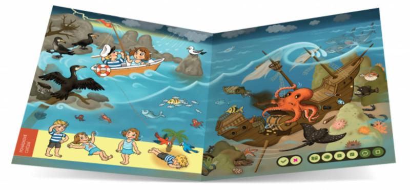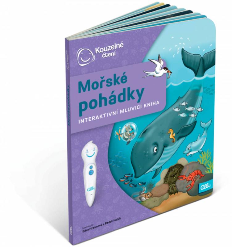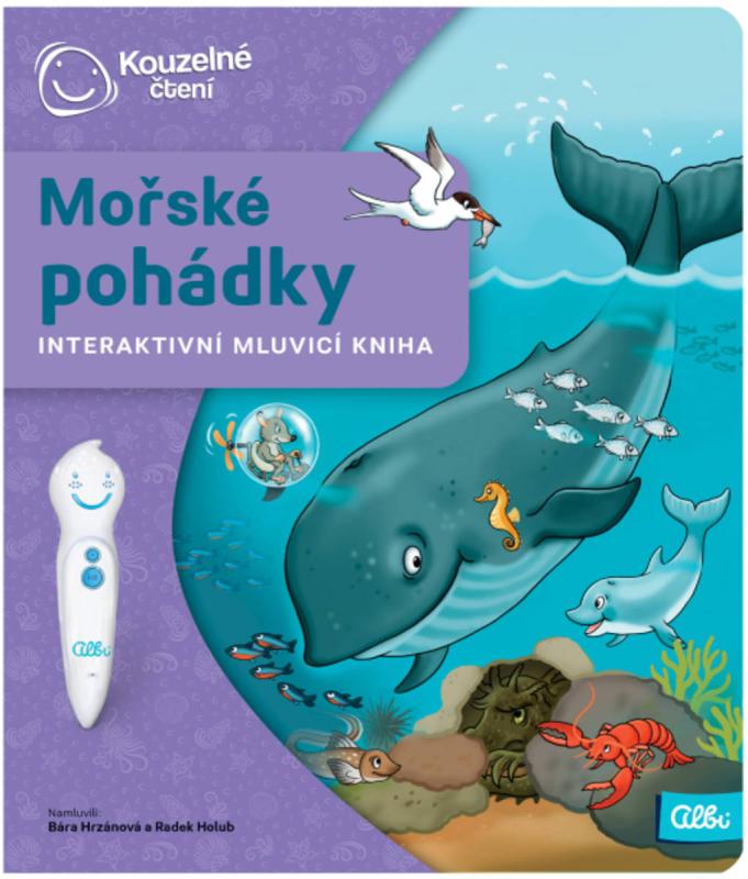 Mořské pohádky - Interaktivní mluvicí kniha z produktové řady "Kouzelné čtení" od Albi.Mořské pohádky z edice Kouzelné čtení jsou originální knihou, která propojuje kouzelné příběhy s prvky jógy. Děti si poslechnou dobrodružné povídání z cest Majdy a Toníka - dvou malých námořníků, trošku se protáhnou, odpočinou si u pohádky s mořskými zvířátky a nakonec se přenesou například na ostrov papoušků u relaxace. Koncepci knihy zpracovala zkušená autorka knih a CD s jógou pro děti - Monika Nikodemová, podobu hrdinům vdechla ilustrátorka Veronika Balcarová. Kniha Mořské pohádky obsahuje přes 1200 zvukových stop. Namluvili Bára Hrzánová a Radek Holub.