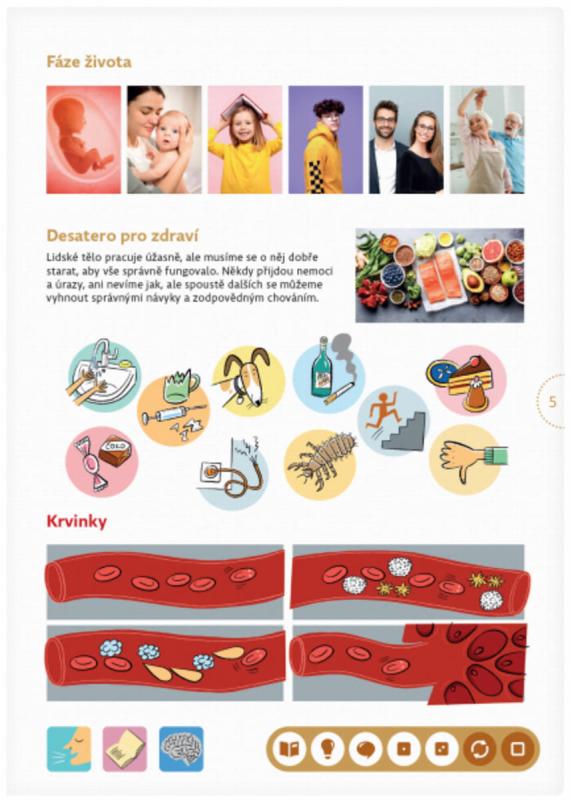 Prvouka - Interaktivní mluvicí učebnice z produktové řady "Kouzelné čtení" od Albi.Mluvicí učebnice Prvouka z edice Kouzelné čtení dětem od 6 let zábavnou a interaktivní formou představí to nejdůležitější, co by měl žák 1. stupně znát z předmětu Prvouka. Obsahuje 17 kapitol, které jsou zaměřeny na to nejdůležitější ze vzdělávací oblasti Člověk a jeho svět - např. Lidské tělo, Moje vlast, Vesmír, Louka, Roční období, Ochrana přírody a jiné. Prostřednictvím zajímavých ilustrací, fotografií či komiksů školáci rychleji proniknou do učební látky a pomocí interaktivních kvízů si získané poznatky upevní. Témata jsou vybraná dle školních osnov předmětu Prvouka pro děti od 1. do 3. třídy a pokrývají jak oblasti, které dělají dětem největší potíže, tak informace, které k životu skutečně potřebují. Seznam jednotlivých kapitol: Rodina a lidé kolem nás, Zázračné lidské tělo, První pomoc, Moje vlast, Peníze, Jak měříme svět, Doprava, Vesmír, Roční období, Neživá příroda, Les, Louka, Voda a její okolí, Pole a zahrady a Ochrana přírody. Prvouka je první knihou z edice Chytrý školák, ve které se v budoucnu můžete těšit ještě na Přírodovědu a dvoudílnou Vlastivědu (dějepisnou a zeměpisnou část), kterou pro vás připravujeme. Naším cílem je, aby děti učení zase bavilo. Aby je bavilo objevovat všechny souvislosti, přemýšlet o nich, a aby tak lépe porozuměly světu kolem nás. Kniha Prvouka obsahuje téměř 3 000 zvukových stop.
