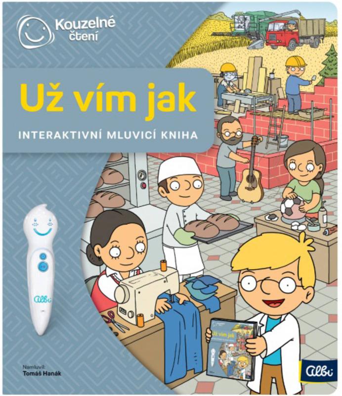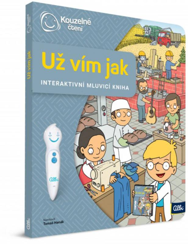 Už vím jak - Interaktivní mluvicí kniha z produktové řady "Kouzelné čtení" od Albi.Také vás vždy zajímalo, jak se vyrábí různé věci kolem nás? Jak se staví dům, jak se vyrábí jídlo, nádobí, oblečení nebo zábava? A v neposlední řadě: jak vlastně vznikla tato mluvící kniha? Na všechny tyto otázky a mnoho dalších vám odpoví průvodce Vojta, který knihu Už vím jak z edice Kouzelné čtení sám napsal a namaloval a objevuje se na jejich stránkách. Najdete ho všude? Vojta vám to vysvětlí. Kniha Už vím jak obsahuje přes 2 500 zvukových stop.