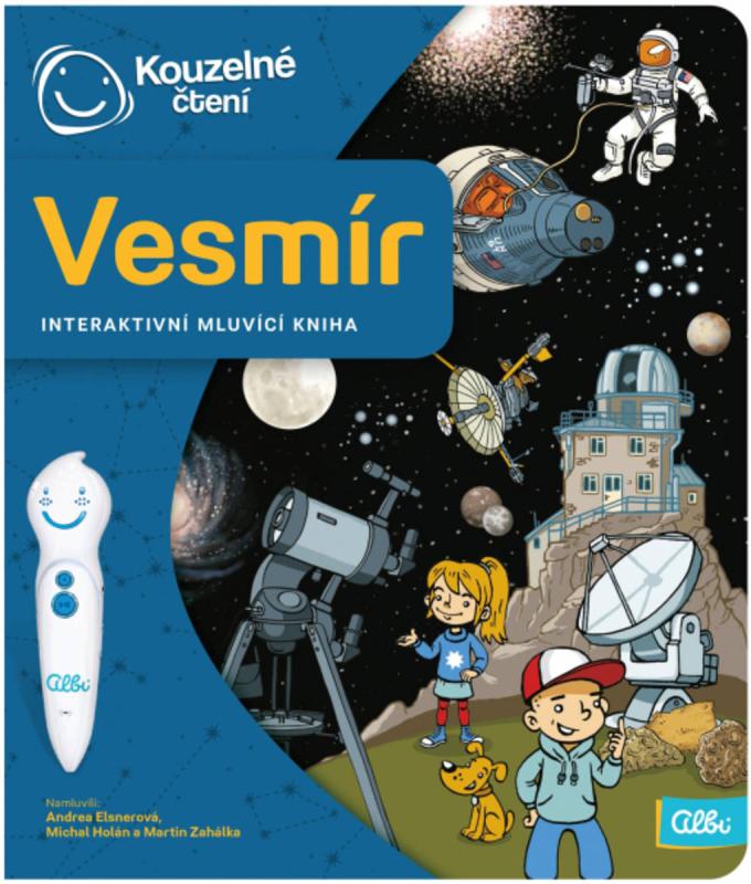 Interaktivní mluvící kniha Vesmír z edice Kouzelné čtení ukáže dětem od 6 let, jak dlouhou cestu ušel výzkum od prvotního pozorování hvězd až po lety na Měsíc a ještě dál. Co by asi říkali starověcí hvězdáři a astronomové na dnešní poznatky o vesmíru? Děti knihou provedou profesor Pulzar, Albína, Jonáš, pes Ajnštajn a kočka Eris, kteří jim přinesou pohled na vesmír od dob dávno minulých po současnost. Kniha Vesmír obsahuje přes 2200 zvuků a textů. Je namluvena Andreou Elsnerovou, Michalem Holánem a Martinem Zahálkou.