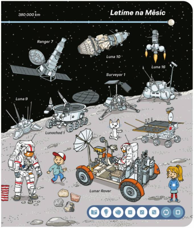 Vesmír - Interaktivní mluvicí kniha z produktové řady "Kouzelné čtení" od Albi.Interaktivní mluvící kniha Vesmír z edice Kouzelné čtení ukáže dětem od 6 let, jak dlouhou cestu ušel výzkum od prvotního pozorování hvězd až po lety na Měsíc a ještě dál. Co by asi říkali starověcí hvězdáři a astronomové na dnešní poznatky o vesmíru? Děti knihou provedou profesor Pulzar, Albína, Jonáš, pes Ajnštajn a kočka Eris, kteří jim přinesou pohled na vesmír od dob dávno minulých po současnost. Kniha Vesmír obsahuje přes 2200 zvuků a textů. Je namluvena Andreou Elsnerovou, Michalem Holánem a Martinem Zahálkou.