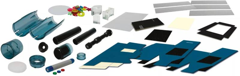 Balení obsahuje: 1 svítilnu, 1 kartonový výřez světlovodu, 1 spojnou čočku, 1 rozptylnou čočku, 1 hranol, 1 červený filtr, 1 zelený filtr, 1 modrý filtr, 1 kartonový výřez periskopu, 5 plastových zrcátek (34 × 125 mm), 1 kartonový výřez magického trezoru na mince, 1 kartonový výřez vnitřku magického trezoru na mince, 1 plastové zrcátko (89 × 125 mm), 1 kartonový výřez dírkové kamery, 1 kartonový výřez rámečku na projekční plochu, 1 objektivovou čočku, 1 okulár, 1 tubus okuláru, 1 kroužek na tubus, 1 zaostřovací tubus, 1 tubus dalekohledu, 1 okulár, 1 odnímatelný kryt, 2 plastové díly tubusu (levý, pravý), 1 komoru na objekty, barevné korálky, návod