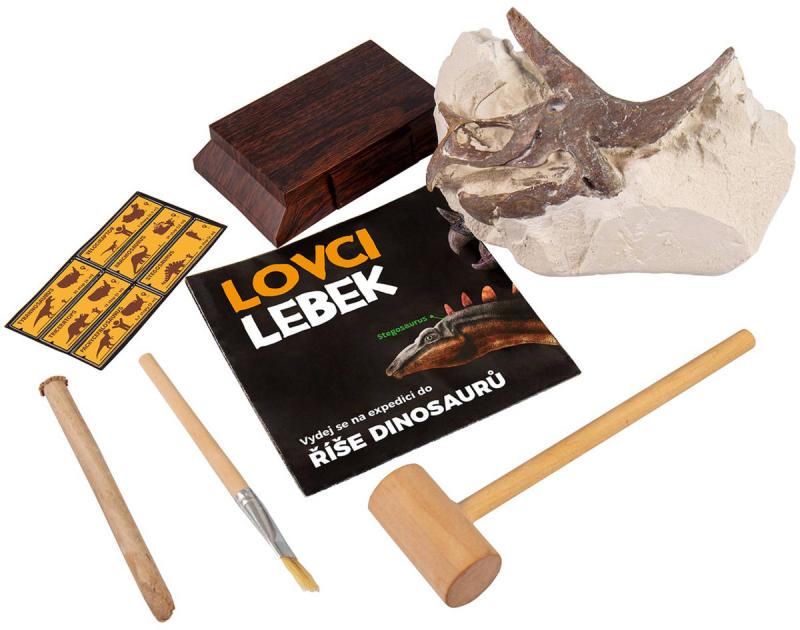 Obsah balení: hliněný kvádr, kladívko, dláto, štětec na prach, podstavec, instrukce
