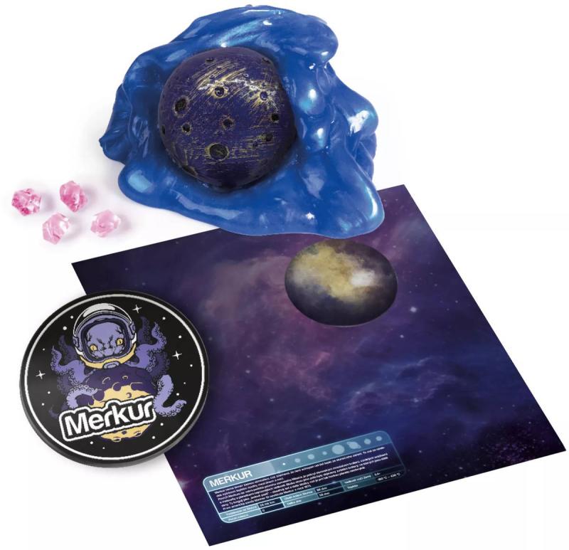 Meziplanetární průzkumník: Merkur z edice ALBI Science. Součástí model planety, vesmírný sliz, plakát a další.Staňte se meziplanetárním průzkumníkem a objevte úžasná fakta o Merkuru, nejmenší planetě naší sluneční soustavy. Prozkoumejte tajemný vesmír a objevte působivý sběratelský model Merkuru s jeho vzácnými krystaly. Získáte také unikátní plakát a překrásný odznak.