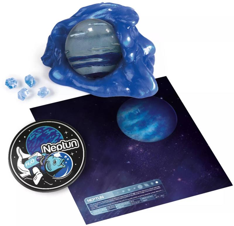 Meziplanetární průzkumník: Neptun z edice ALBI Science. Součástí model planety, vesmírný sliz, plakát a další.Staňte se meziplanetárním průzkumníkem a objevte úžasná fakta o Neptunu, modrém obrovi naší sluneční soustavy.Prozkoumejte tajemný vesmír a objevte působivý sběratelský model Neptunu s jeho vzácnými krystaly. Získáte také unikátní plakát a překrásný odznak.