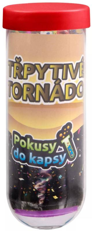 Pokusy do kapsy: Třpytivé tornádo - Dětský experimentální vědecký set z produtové řady ALBI Science.Víte, že tornádo je prudký, silně rotující sloup vzduchu, který se táhne z bouřkového oblaku až k zemi? Zkoumejte barevné třpytivé tornádo díky jednoduchému experimentu. Budete k němu potřebovat 2 PET láhve.