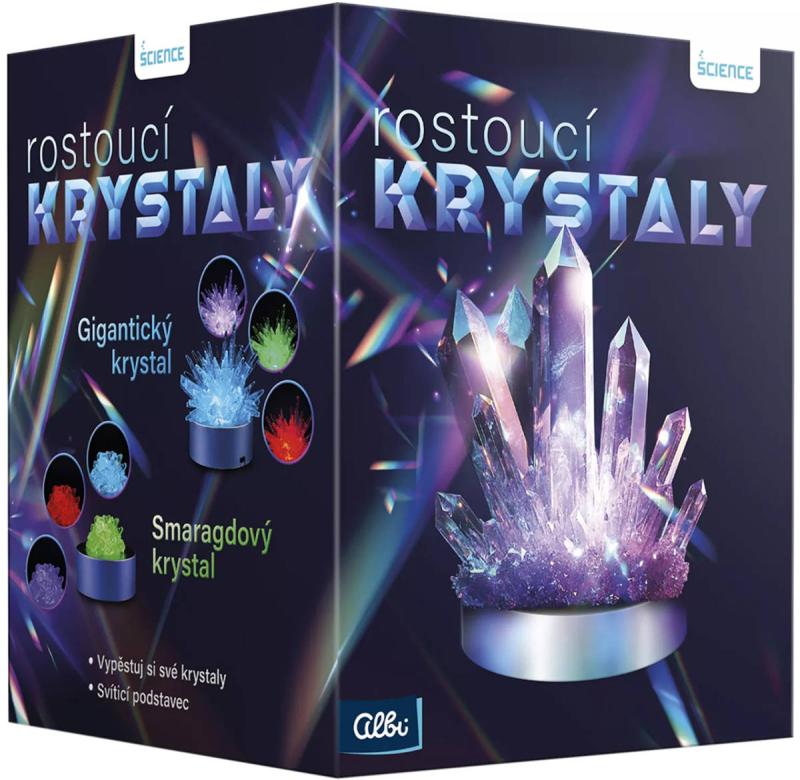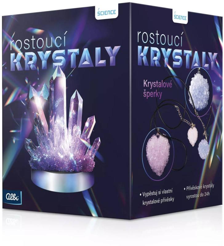 Rostoucí krystaly je vzdělávací tvořivá sada z edice Albi Science pro pěstování vlastních krystalů. Obsahuje vše, co je potřeba k vypěstování dvou krystalových přívěsků (které vyrostou do 24 hodin), jednoho smaragdového krystalu a jednoho čirého gigantického krystalu o průměru 12cm. Sada obsahuje i LED svítící stojánek, který váš krystal rozzáří a promění ho v dechberoucí dekoraci. Otevřete dveře do světa vědy a krásy. Pěstujte své jedinečné krystaly, pozorujte je a zjistěte spoustu zajímavostí, kterými můžete oslnit své přátele. Tip na dárek pro zvídavé děti od 8 let, které rády tvoří.