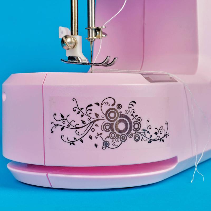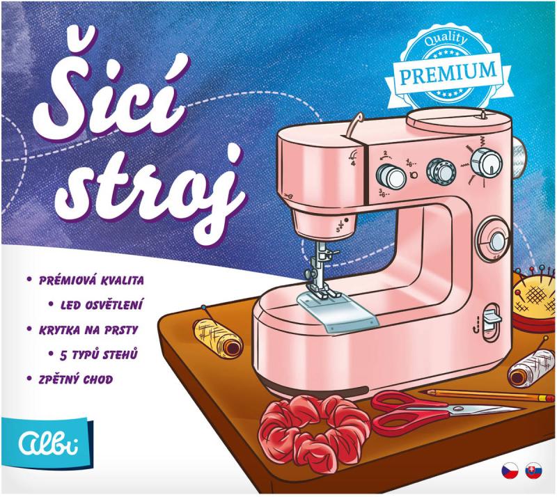 Kvalitní designový šicí stroj, na kterém se děti naučí základy šití. Šicí stroj je napájen adaptérem (do elektrické zásuvky) s příslušenstvím a materiálem na výrobu gumiček do vlasů. Hračka se světlem.Stroj je snadný na ovládání, disponuje LED světýlkem, samolepkami a spodní a horní nití. Vyzkoušejte 5 typů stehů, řezač nitě a ochranný kryt na prsty.