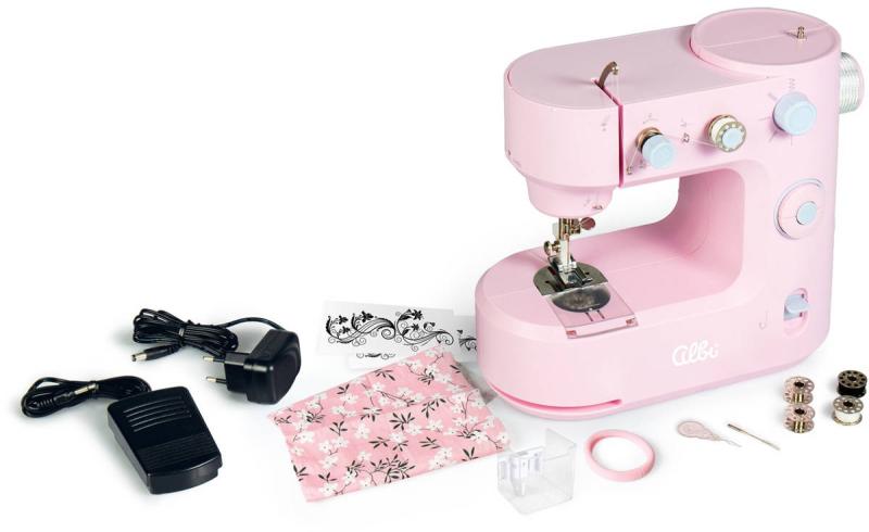 Albi Šicí stroj dětský růžový elektrický premium na adaptér s doplňky LED Světlo