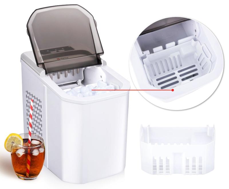 LED displej – na horní straně výrobníku ledových kostek se nachází snadno ovladatelný LED displej. Tak můžete zvolit velikost ledových kostek, zjistit, zda je přístroj zapnutý a kdy je led hotový nebo zda potřebujete doplnit vodu.