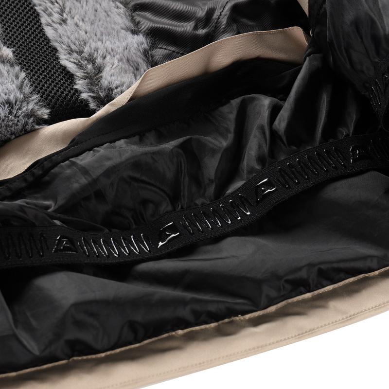 Pro lepší regulaci teploty je bunda vybavena odvětráváním v podpaží na zipy, které oceníte při náročnějších sjezdech nebo při chůzi do kopce. Kapuce je odepínatelná a lze ji stahovat, což zvyšuje ochranu proti větru a sněhu. Součástí je také odepínatelná kožešina, která přidává na stylu a teple.