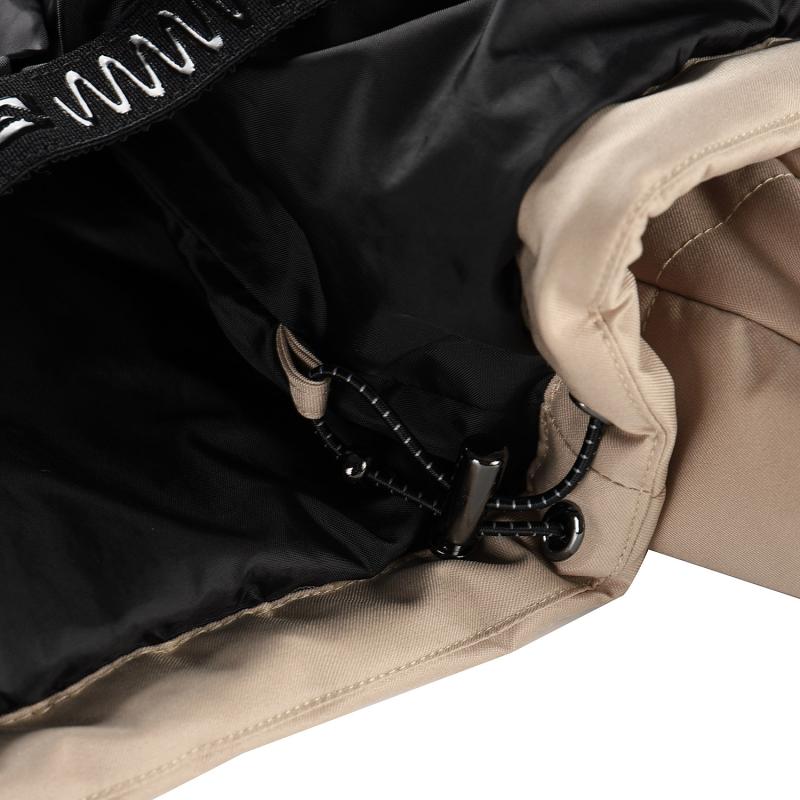 Sněhový pás je odepínatelný a navržený s elastickou vsadkou v horní části, která umožňuje větší rozsah pohybu a lepší ochranu proti pronikání sněhu do spodní části bundy. Spodní část bundy lze regulovat pomocí gumičky pro přesnější přizpůsobení postavě.