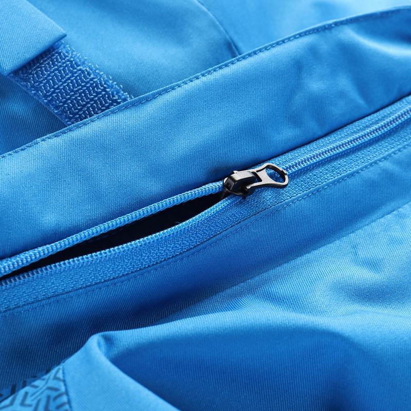 Spodní lem lze snadno stáhnout gumičkou podle potřeby, což pomáhá udržet teplo uvnitř. Praktické uspořádání kapes zahrnuje celkem sedm míst pro uložení drobností: náprsní kapsu s voděodolným zipem, kapsu na rukávu na skipas, dvě přední kapsy na zip, vnitřní kapsu na zip a síťovanou kapsu na lyžařské brýle.