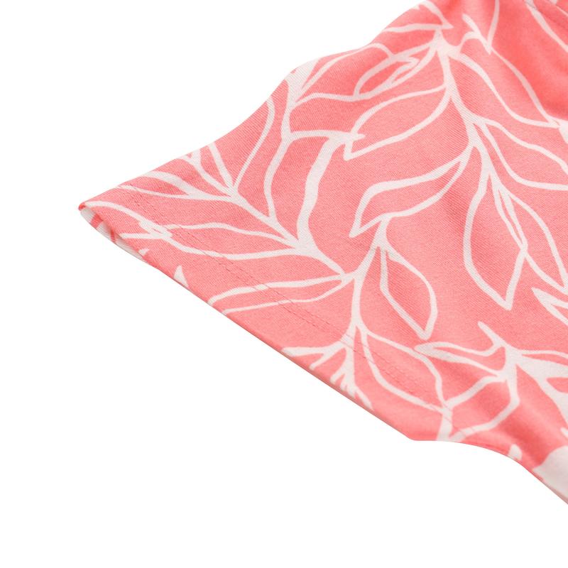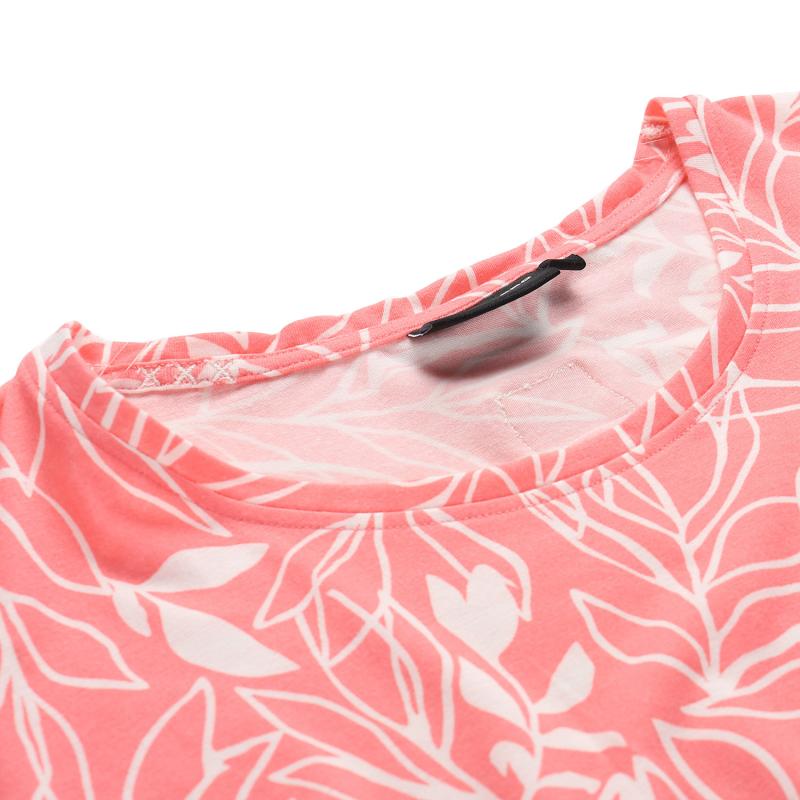 Dámské letní šaty jsou vyrobeny z materiálu obsahujícího 95 % polyesteru a 5 % elastanu, což zajišťuje příjemnou pružnost a volnost pohybu během nošení. Díky celopotištěnému designu působí šaty svěže a moderně, zatímco polopřiléhavý střih a délka pod kolena elegantně zvýrazňují ženskou siluetu. Součástí je pásek, který umožňuje upravit tvar šatů a zvýraznit pas podle osobních preferencí. Na zadním dílu se nachází decentní nášivka, která doplňuje celkový vzhled a dodává šatům originální detail.