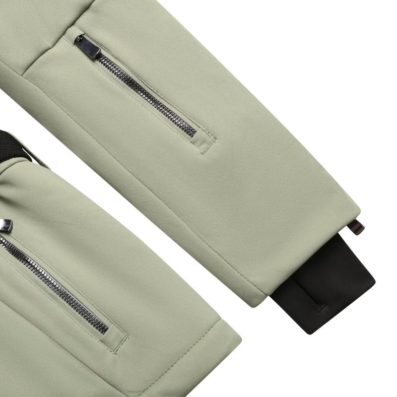 Rukávy sú vybavené vnútornou elastickou manžetou, ktorá zabraňuje prenikaniu chladu, a v podpazuší sú umiestnené zipsy pre odvetrávanie, čo umožňuje lepšiu reguláciu teploty podľa potreby. Snehový pás je odopínateľný a disponuje elastickou vsadkou v hornej časti, čo zvyšuje rozsah pohybu a komfort pri nosení. Spodná časť bundy má možnosť regulácie šírky, takže sa bunda prispôsobí postave.
